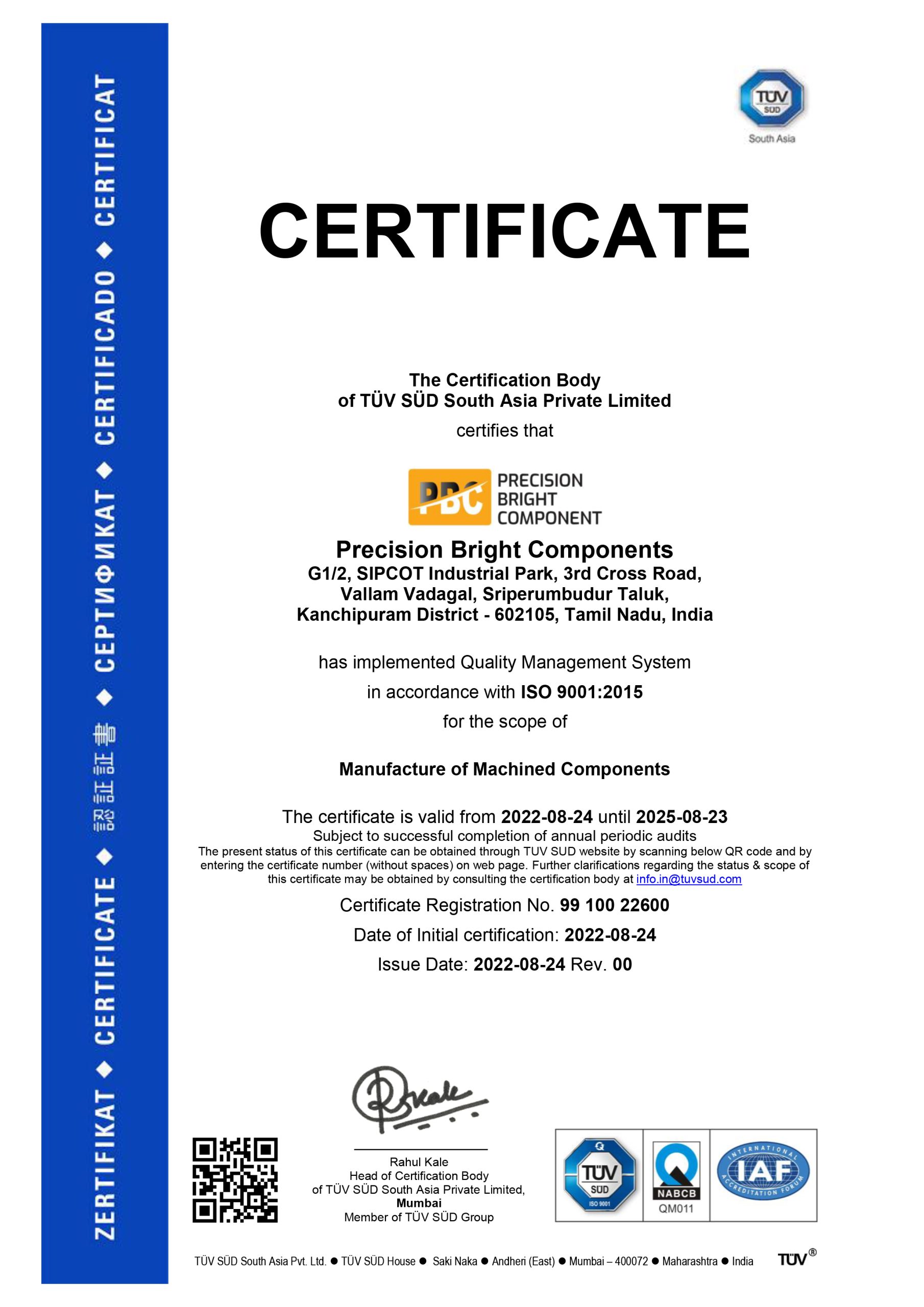 Our certifications such as ISO 9001-2015 approved, IATF 16949: 2016, confirm that quality is at the heart of all manufacturing processes at Precision Bright Europe.